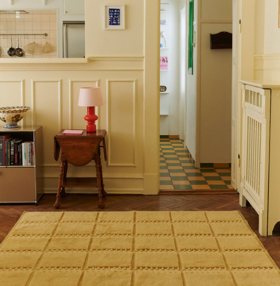 A series of handcrafted wool rugs in a refined palette of solid colors.