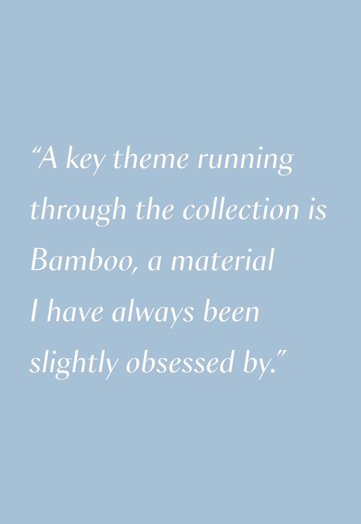 A key theme running through the collection is Bamboo, a material I have always been slightly obsessed by - I have sourced and worked with a lot of bamboo and faux bamboo chippendale-style furniture and decorative pieces.