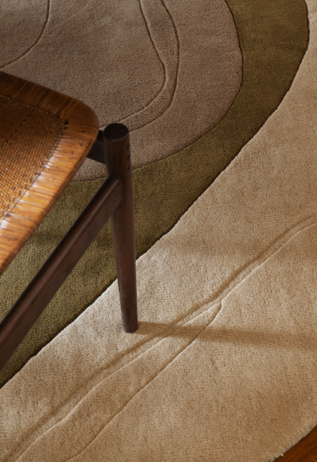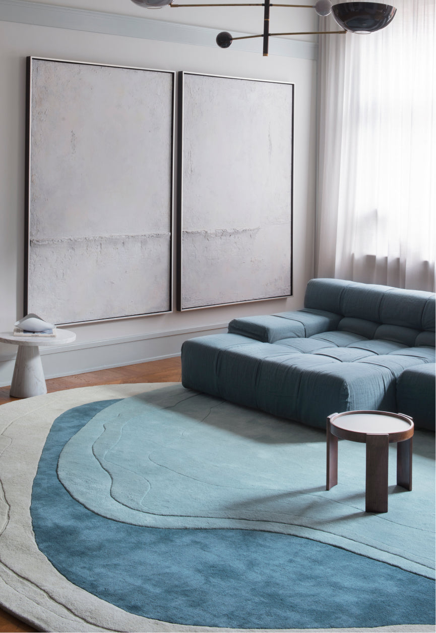 Each rug is composed of three tonal fields. A lighter perimeter serves to lift the surrounding space, while deeper pigments anchor the center. Subtle variations in pile height and tactile detailing introduce a sense of depth. Available in two colorways, the collection is engineered to harmonize with both warm and cool palettes, offering a seamless integration across diverse interior typologies.