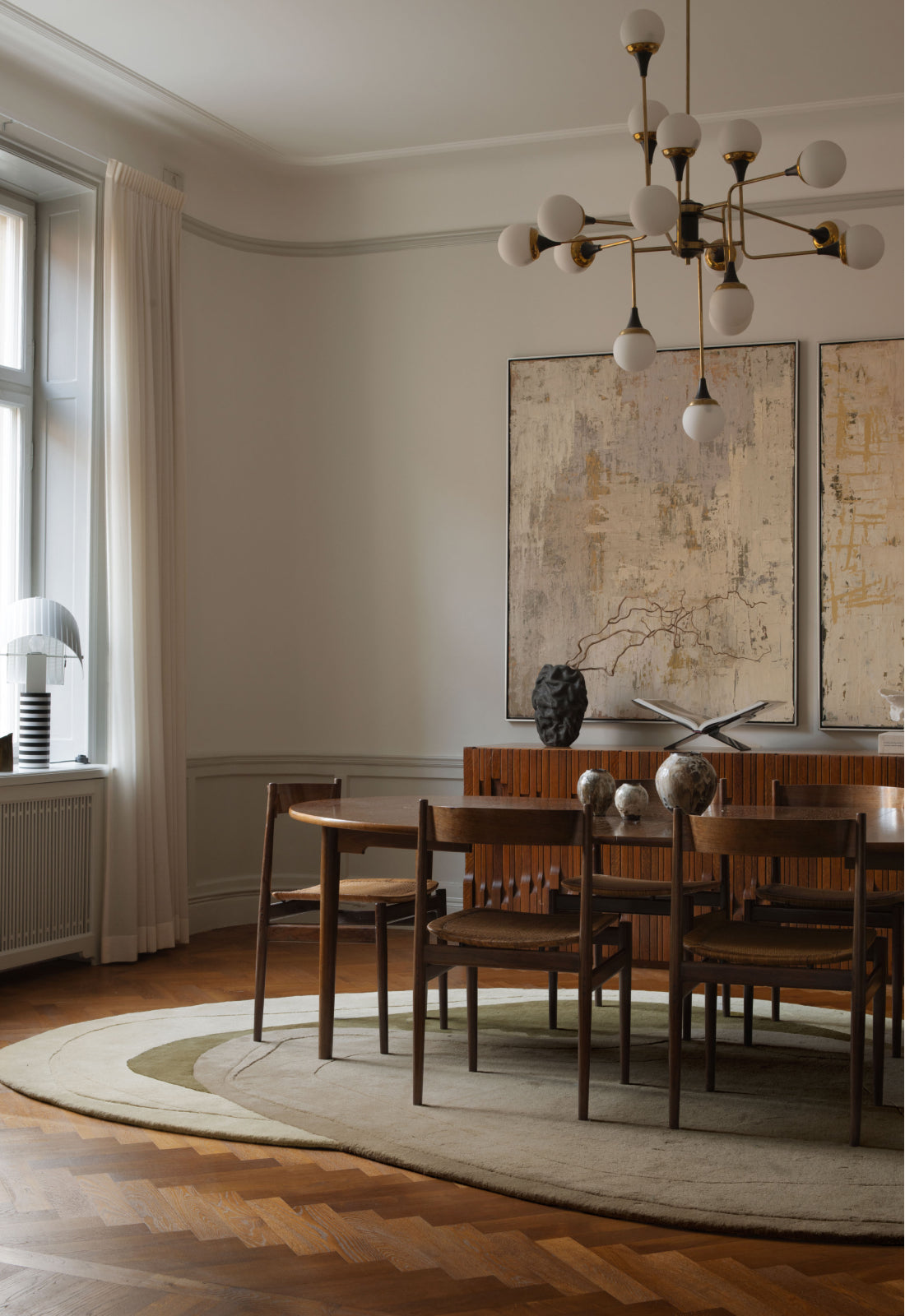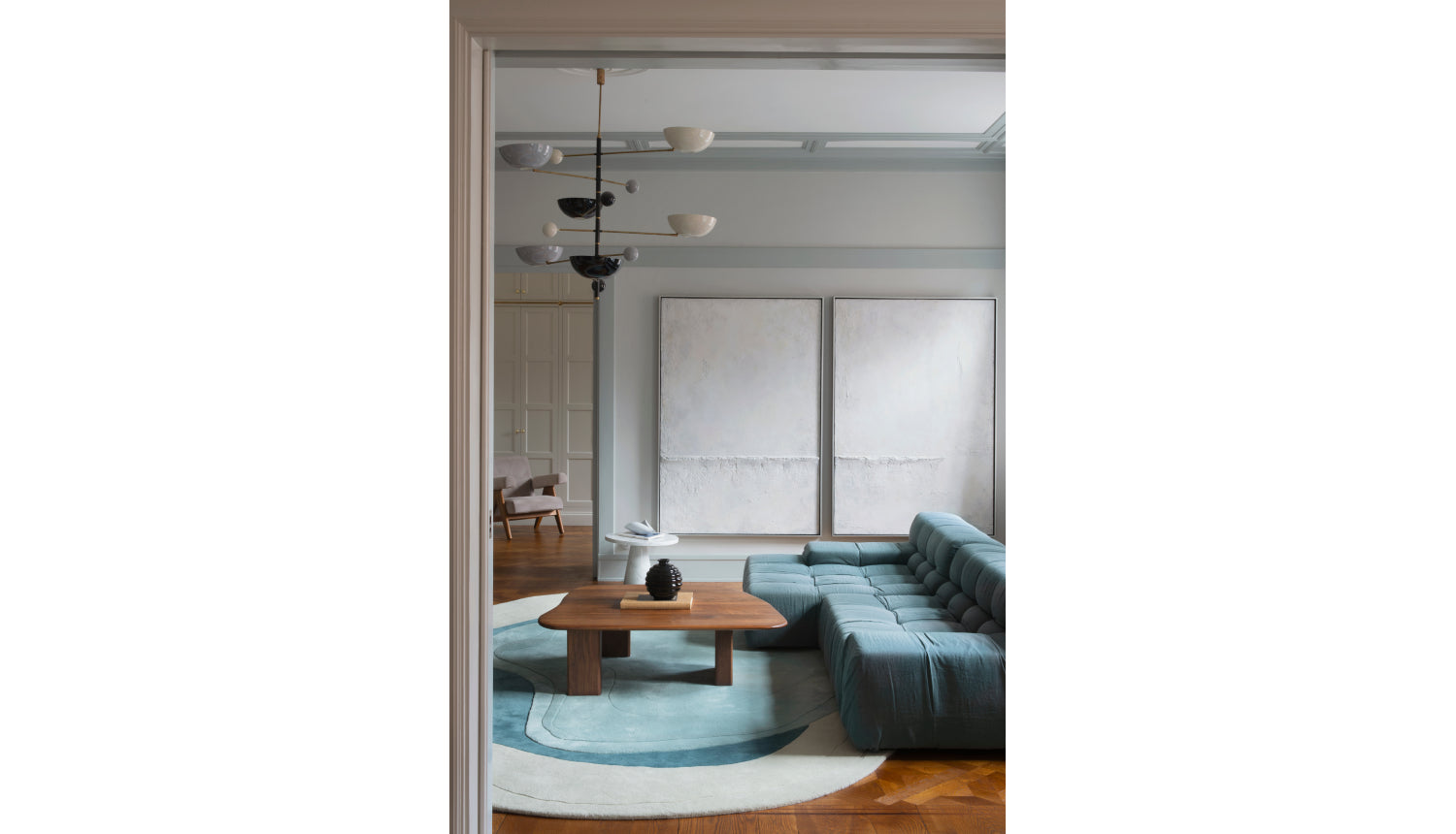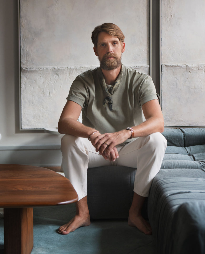 Erik Bratsberg is an artist and designer working across the fields of art, interiors, and spatial design. With a background in economics and a decade spent in finance, he has since developed an intuitive, material-driven practice where geometry, organic form, and color converge in carefully balanced compositions.