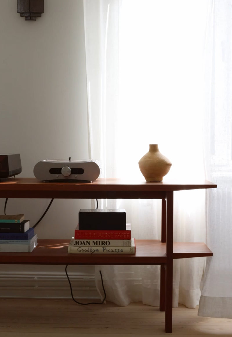 For the past year, she has served as Creative Director of her newly launched Swedish label LEONÍ. Together with her partner, Swedish composer Jacob Mühlrad, she lives in an apartment in Östermalm, Stockholm — a home where creativity and craftsmanship intertwine as a common thread.