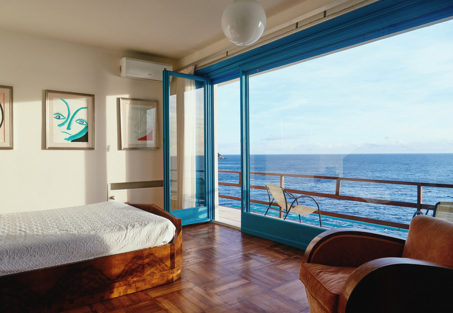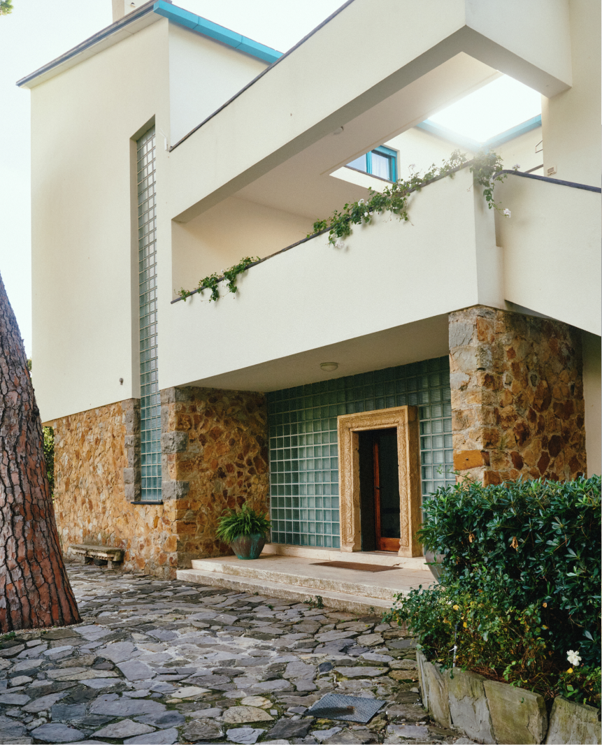 The house, designed in the 1930s by architect Luigi Carlo Daneri, sits on a rocky hillside overlooking the Mediterranean in Liguria.