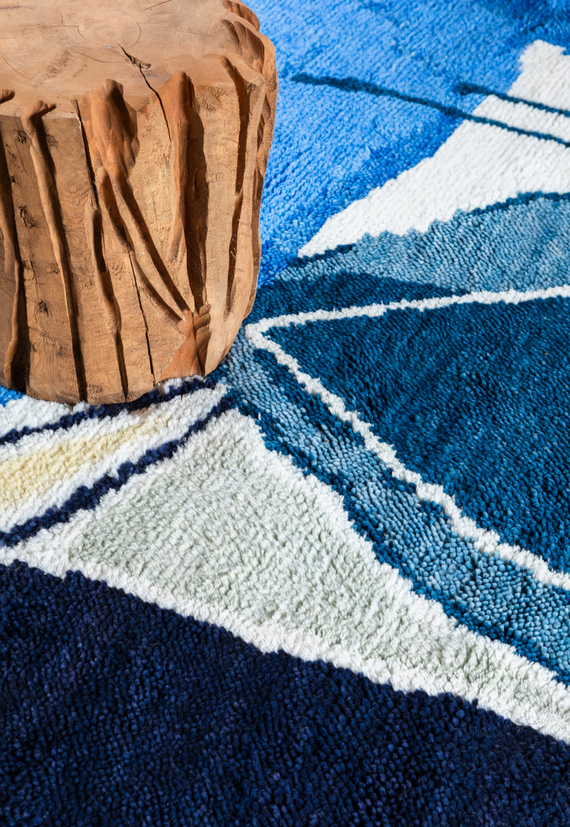 Blue Lake is inspired by a mirror-still lake in northern France — a place Heather Chontos passed daily during a time of personal transition. First created as a painting on linen, the artwork captures the muted light, deep blue hues, and quiet presence of the landscape. Translated into a rug, it retains that same sense of calm, with gentle tonal shifts and a soft, tactile surface. A visually harmonious piece — as much an artwork as it is a grounding element for an elegant, tranquil space.