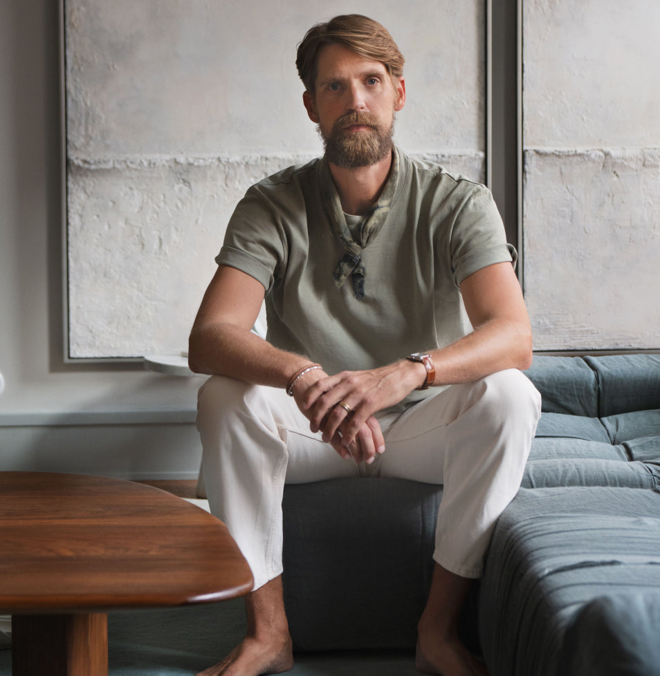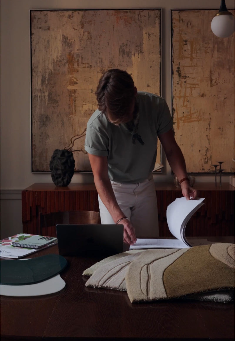 Erik Bratsberg is an artist and designer working across the fields of art, interiors, and spatial design. With a background in economics and a decade spent in finance, he has since developed an intuitive, material-driven practice where geometry, organic form, and color converge in carefully balanced compositions.