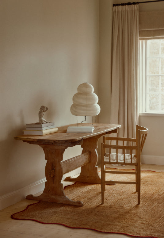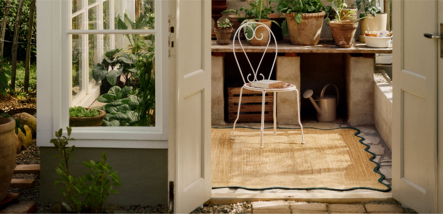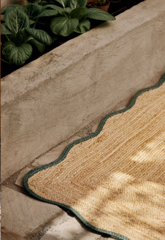 Playful design meets a sense of Italian elegance. This collection features a soft, scalloped edge that adds a subtle yet eye-catching twist to the classic jute weave. To achieve this fluid shape, the jute is braided and coiled into circular forms, then finished with a refined accent border.