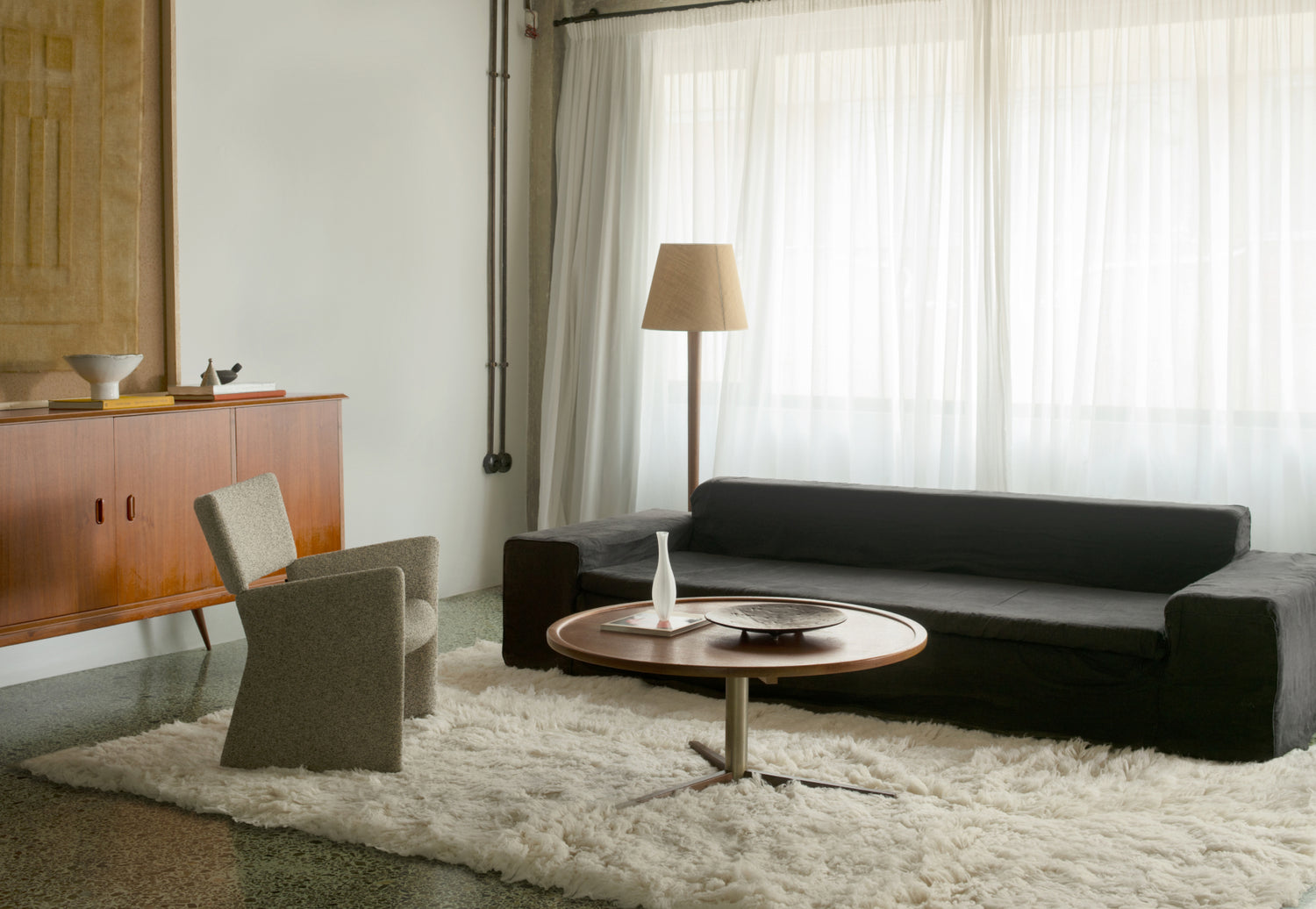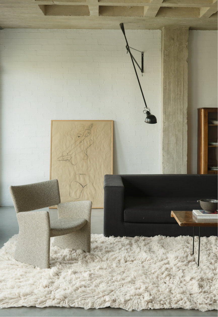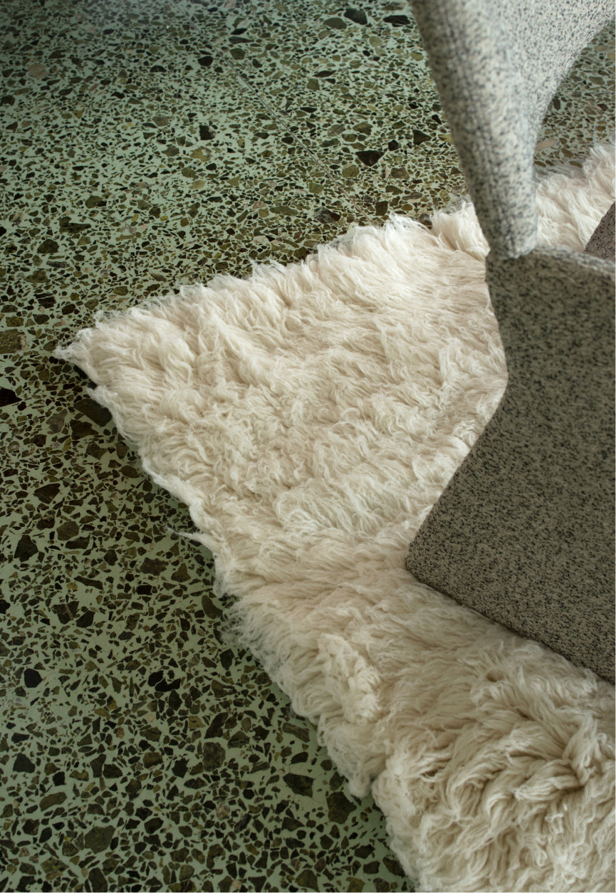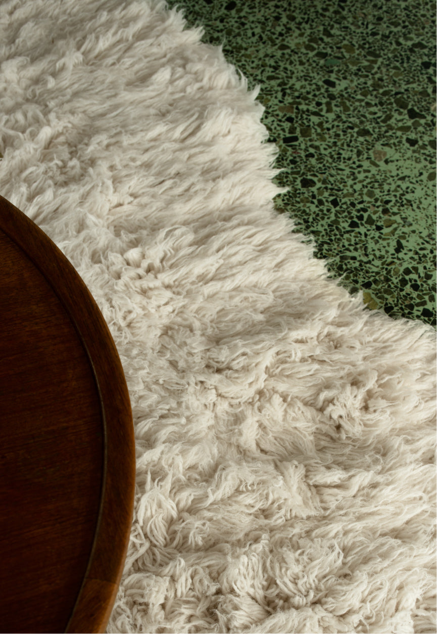 The Greek flokati carries a lineage rooted in utility, once crafted to withstand the harsh winters of the Greek highlands. After its peak in 1960s and 70s interiors, the technique largely disappeared from contemporary design. LAYERED’s reintroduction of the quality focuses on this heritage, allowing the rug’s expansive texture to serve as a soft, organic layer within a minimal aesthetic.